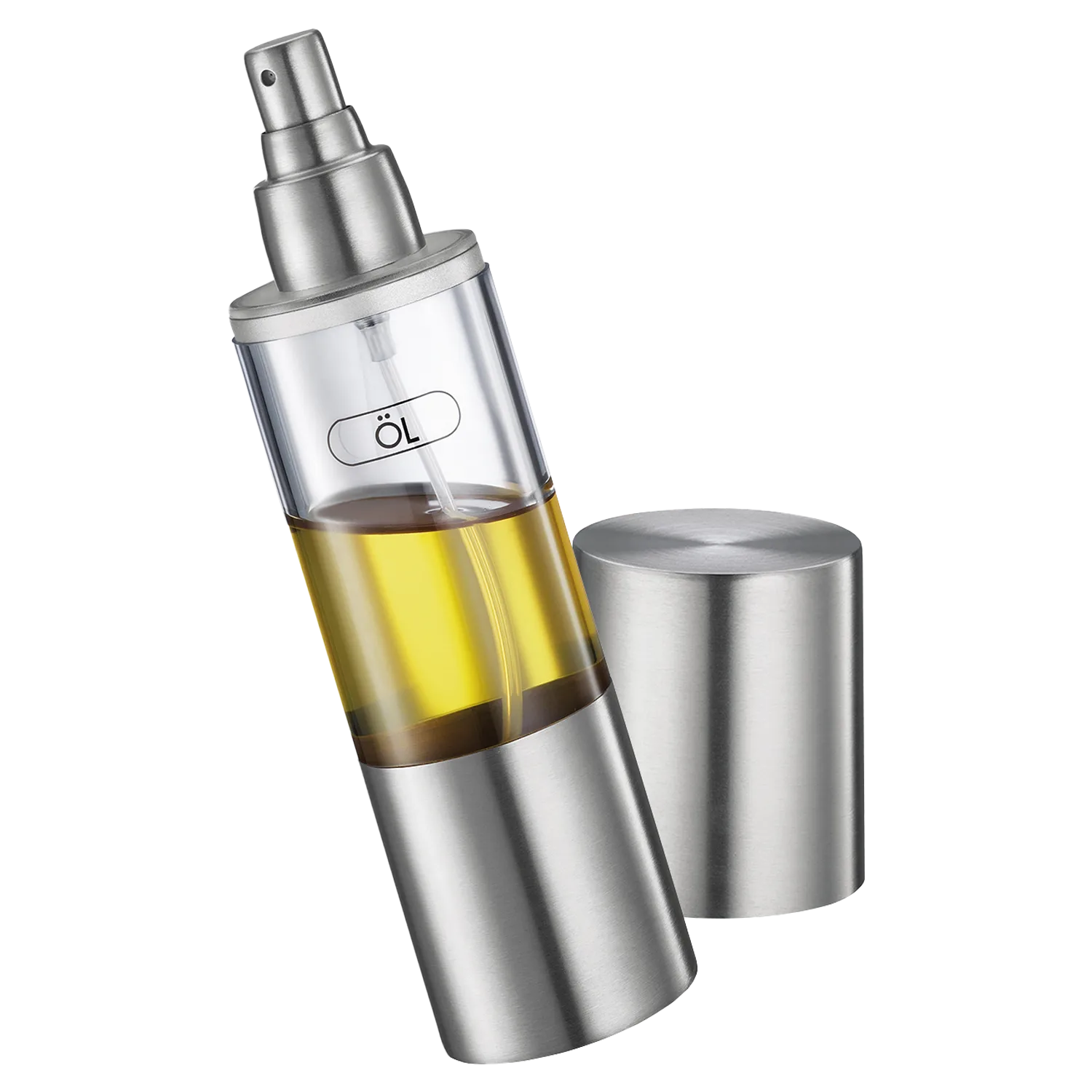 - Eleganter Ölspender aus Edelstahl mit feinem Ausgießer