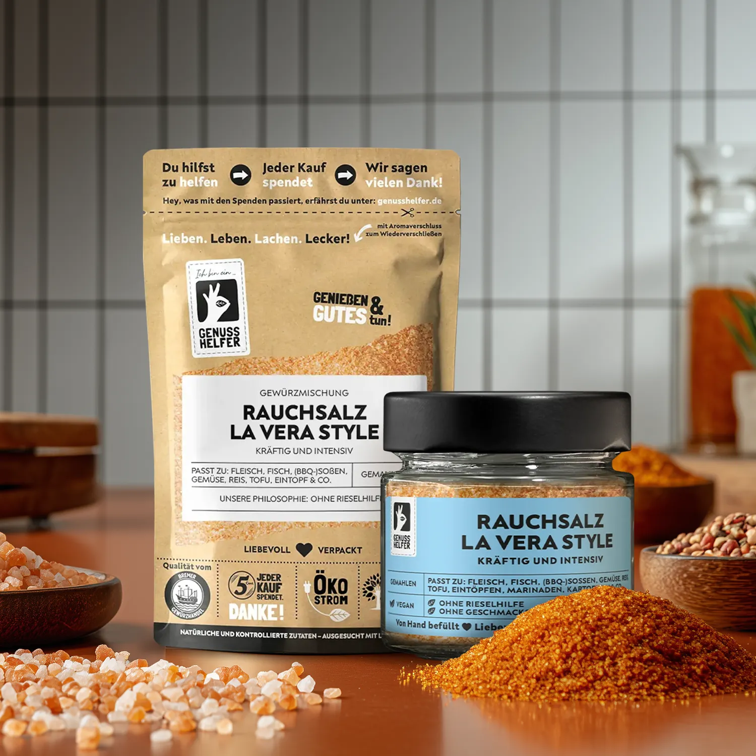 Was Speisen und Gewürzmischungen gut tut, kann auch für Salz nicht schlecht sein. Aus dieser Erkenntnis heraus stammt die Idee für unser Rauchsalz La Vera Style. Der intensive Geschmack von geräucherter Paprika macht das Rauchsalz La Vera Style zu einem intensiven, kulinarischen Erlebnis. Da wird das Zubereiten von Fleisch, Tofu oder Gemüse zum kulinarischen Ausflug auf die iberische Halbinsel.