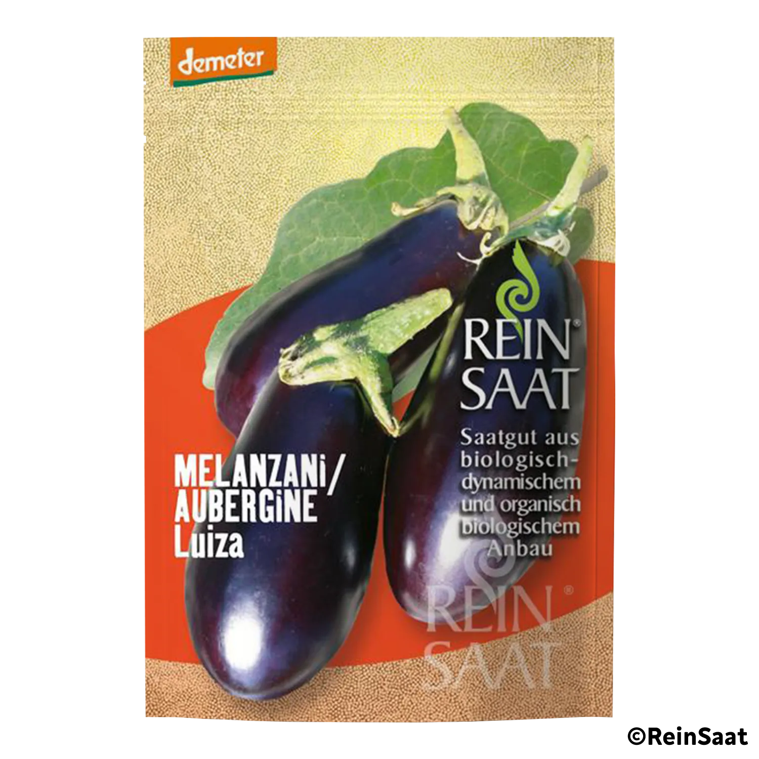 Luiza (Solanum melongena L.) ist eine sehr ertragreiche, mittelfrühe Auberginen-Sorte mit ovalrunden, dunkelvioletten, schwarz glänzenden Früchten. Ihr festes, fein aromatisches Fruchtfleisch überzeugt ohne bitteren Beigeschmack – ideal für mediterrane Gerichte.