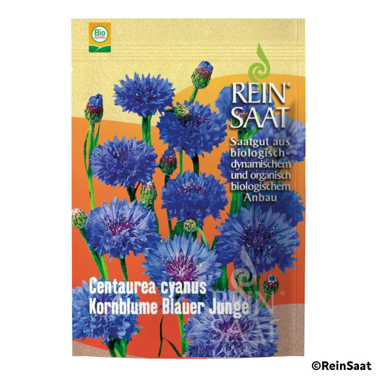 Die Kornblume „Blauer Junge“ (Centaurea cyanus) ist eine klassische einjährige Sommerblume mit einer intensiven, tiefblauen Blütenfarbe. Ihre dicht gefüllten Blütenköpfe machen sie nicht nur im Beet zum Hingucker, sondern auch zur idealen Blume zum Trocknen oder für selbstgemachte Teemischungen.