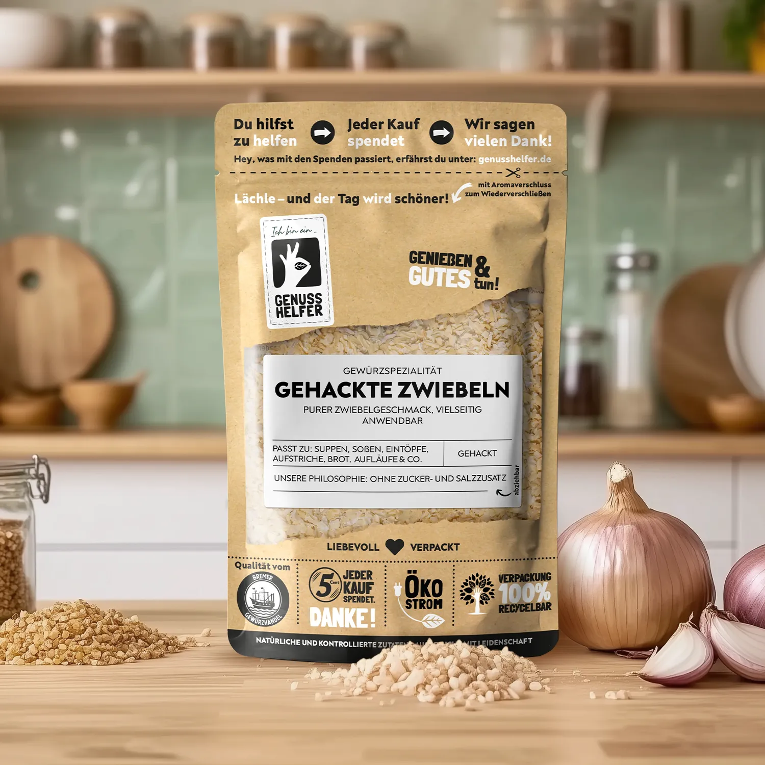 Unsere Genusshelfer-Produkte stehen für ökologische und soziale Nachhaltigkeit. In diesem Sinne spenden wir für jedes verkaufte Produkt mindestens 5 Cent an soziale und nachhaltige Projekte. Denn wir Leisten gerne einen Beitrag für eine bessere Welt von Morgen.