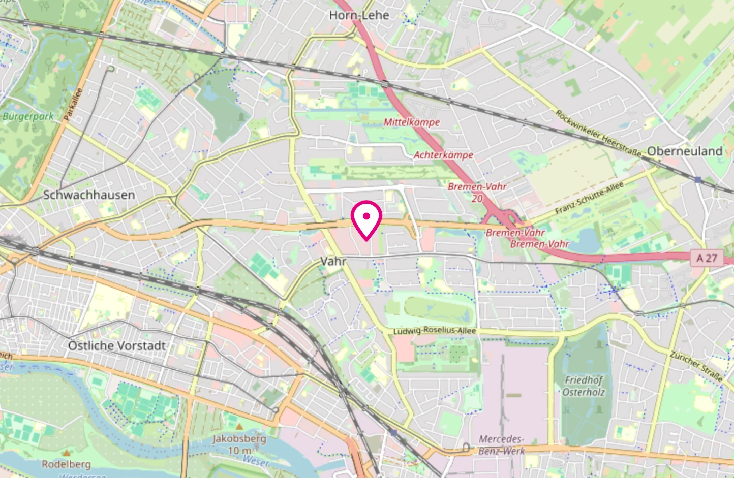 - auf A27 bei Ausfahrt 20 (Bremen-Vahr/Bremen-Centrum) abfahren